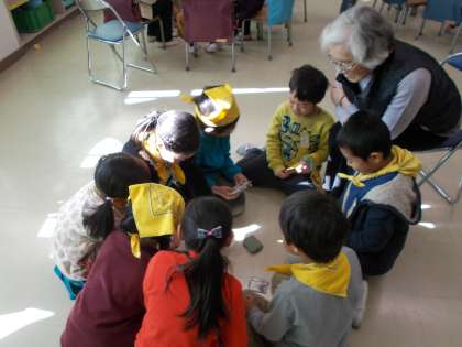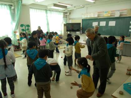 廻寿会の皆さまから昔遊びを教わりました。