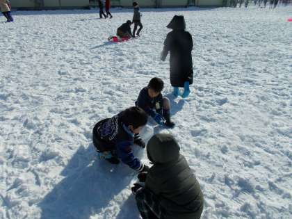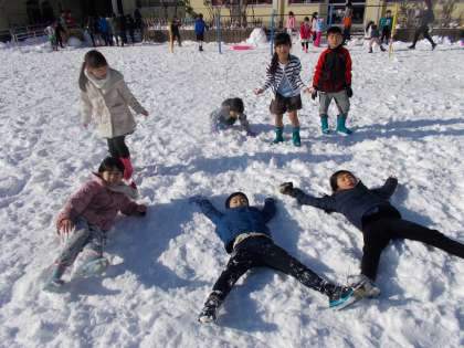雪だるま作り・ソリー・雪合戦・雪の中にジャンプなど、