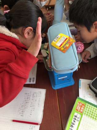 算数では、重さの学習を進めています。今日はgからKgへ。はかりを使ってピッタリ1Kgを協力して作りました。教科書や筆箱を載せ、最後は鉛筆や消しゴムで微調整。メモリがピッタリ1Kgを指すと歓声が上がりました。
