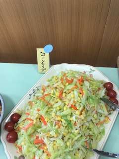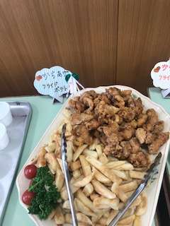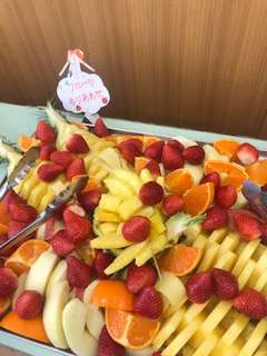 ホテルのビュッフェみたいな素敵なフルーツ盛り合わせをはじめ様々な料理が並んでいます。