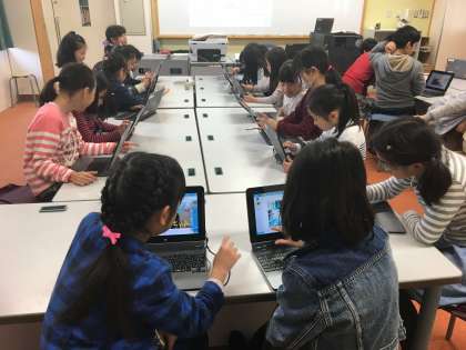 一人ずつタブレットを使って、友達の写真を撮り、文字の挿入、スタンプの挿入をしました。タブレットは、指を使って画面に直接書き込めます。子供たちからワクワク、ドキドキが伝わってきました!