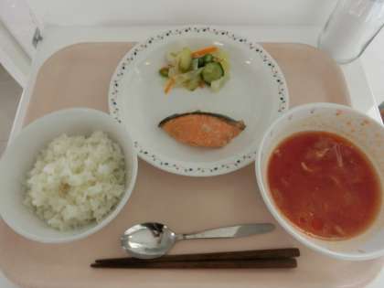 今日は、お酢などの調味料を合わせたマリネ液に浸した鮭をオーブンで焼いた「マリナード焼き」です。魚はまだ苦手な子が多く、半分にして食缶に返しに行く…という光景が見られます。そんな中、5年生のあるクラスでは、このマリナード焼きを巡って熱いおかわりじゃんけんが繰り広げられていました。より多くの子どもたちに魚のおいしさが伝わるように、今後も献立を考えていきます。