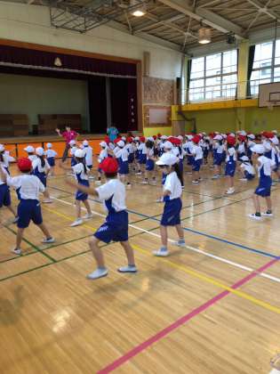 今月末の運動会の為の練習が始まりました。まずはドラえもんの曲に合わせて踊リます。最初からリズム感バッチリで、素晴らしいですね。