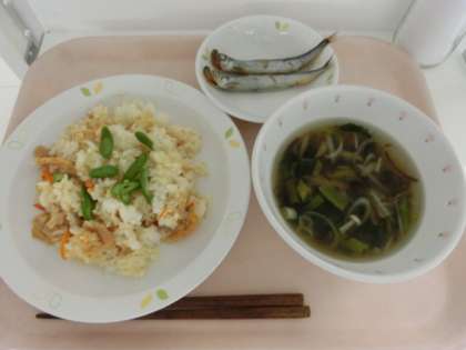 今年度の給食では初めてのししゃもです。魚は骨がたくさんあって苦手と言う子どもは多いものの、今日のししゃもは丸ごと食べられる手軽さからなのか、ほとんどの子どもが完食していました。