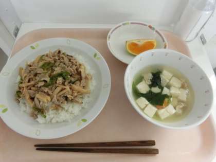 今日はチンジャオロース丼です。本来のチンジャオロースは牛肉を使いますが、給食では豚肉を使っています。また、少しだけ、しいたけも入れています。「なんで昨日も今日もピーマンなんですか〜」と言う子もいましたが、お肉と一緒だからか、あるいは味付けが好みなのか、たくさんの子がおかわりをしていました。