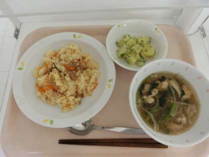 今日はキムチが入ったピリ辛のチャーハンです。子どもが食べやすい味にしているためか、辛さに慣れている子には「もっと辛くしていいのに〜」と言われます。粉吹き芋は青のりと塩コショウの味つけに、スナックのような食べやすさがあるのか、「今日はこれが一番好き!」という子もいました。