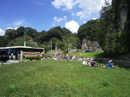 資料館を出ると猛暑でした。近くの公園でお弁当を食べました。