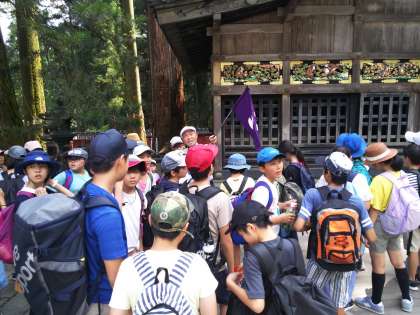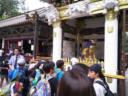 東照宮に着きました。ガイドさんの説明を聞きながら、世界文化遺産を味わいました。ちょっと蒸し暑かったです。