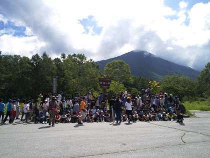 ハイキングの最初は華厳の滝です。天気が良くて虹が見えました。その後三本松で卒業アルバム用の写真を撮りました。