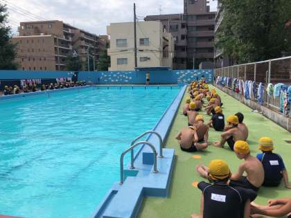 まだまだ暑い中、プールに入りました。今日は検定です。夏休みに頑張った結果、沢山の子が実力を発揮して、上の級に進むことができました。あと一回、入れるといいですね。