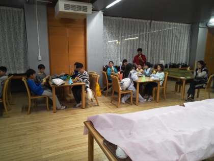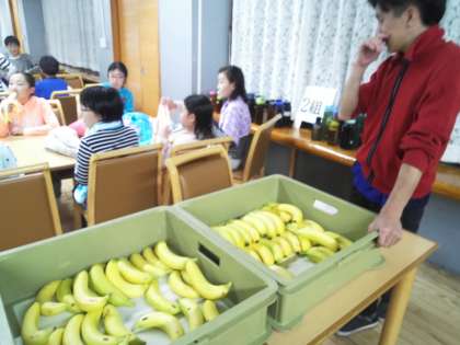 お風呂に入った人は、食堂で夜食のバナナをいただきました。