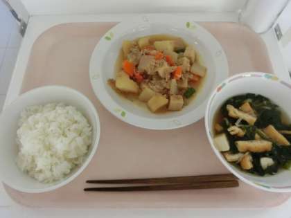 今日は味噌汁に旬のほうれん草を入れました。小松菜と比べて葉や茎がやわらかいので、また違ったおいしさです。今日はとても暖かいですが、予報によれば明日はとても冷え込むとのこと。栄養たっぷりの給食を食べて、今週も元気に過ごしてほしいです。