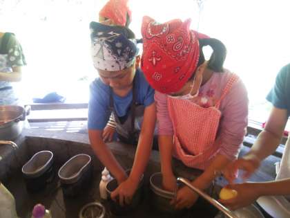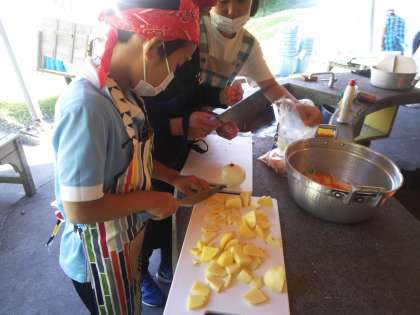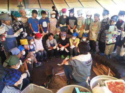 いよいよ飯ごう炊さんの準備です。しっかり説明を聞いて、班ごとに作業に取りかかりました。