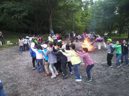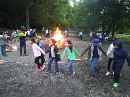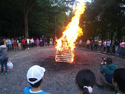もう一つの楽しみ、キャンプフィヤーの始まりです。歌って踊って、盛り上がりました。