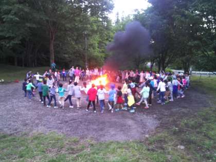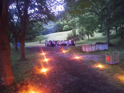 山の中ですが、ソーラン節も踊りました。最後は残り火をみんな見つめて、ちょっとしんみり。ファイヤーロードを通ってビレジに戻りました。