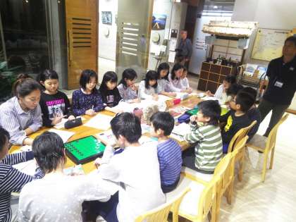 川場移動教室1日目を振り返りました。出てきた反省事項は、明日の朝会で発表します。保健係は、みんなの健康カードを集めて、看護師さんに報告しています。