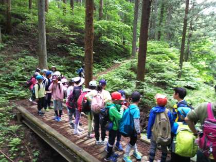 21世紀の森コースのハイキングに出発です。さわやかな山の風が吹く中、自然を味わいました。