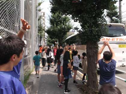 バスが見えなくなるまで、全員でお見送りをしました。