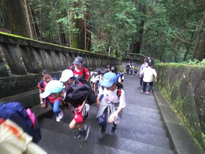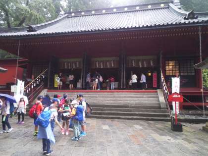 雨があがったばかりの東照宮は、蒸し暑いです。見学途中、通り雨も有りましたが、予定より早く宿に着き、開室式を行いました。
