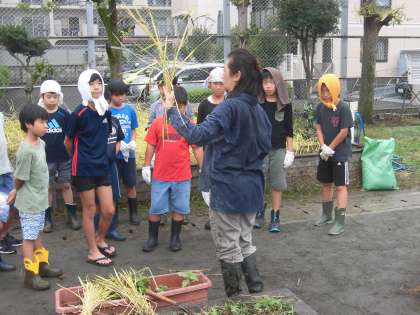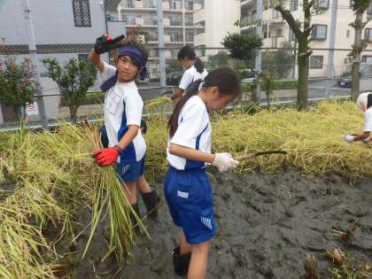 植えたときあんなに小さかった苗が、黄金色に輝いて無事に収穫できました。