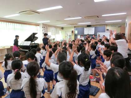 エバリーミニコンサートでは、音楽に合わせて手拍子したり、