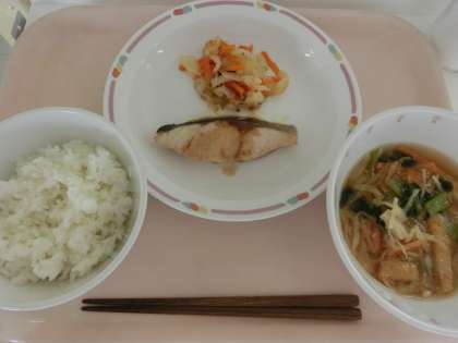 今日の魚はヒラマサです。近い仲間のブリ、カンパチをまとめて「ぶり御三家」と呼ぶこともあるのだとか。聞き慣れない魚でも子どもが食べやすいように、今日は照り焼きにしました。「ごはんと一緒に食べるとおいしい」と両方おかわりをしている子もいました。
