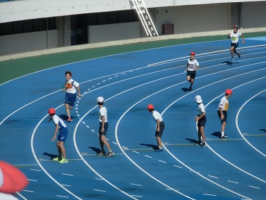 晴天の中、駒沢公園陸上競技場で行われた連合陸上運動会に参加しました。