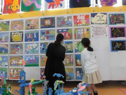 展覧会保護者鑑賞日の午前、6年生は子どもガイドになりました。