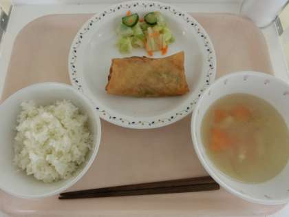 あまり出てこないメニューなので、食べなれない子のお残しが多いかも…と少し不安になりましたが、一年生も「春巻き大好き!」「キムチだけどあんまり辛くないから大丈夫!」とモリモリ食べていました。