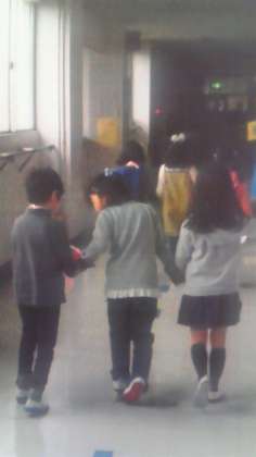 2年生のお兄さんお姉さんに手を引かれて、初めて4階まで上がりました!