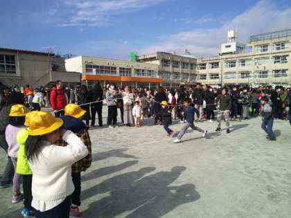 土曜日の3時間目に、たわわり班に分かれて長なわ大会を行いました。学校公開中の開催だったので保護者の方にもたくさん応援していただきました。1年生から6年生まで子どもたちは一生懸命、長なわに取り組んでいました。
