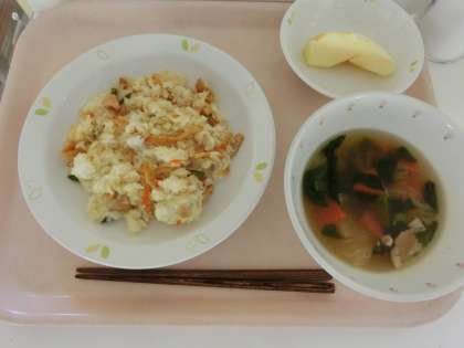 とろみのついたすまし汁は、寒い冬は特においしく感じるものです。きっと今頃は寒さも厳しいだろうと思い考えた献立でしたが、今日は日差しが暖かい一日でした。それでも子どもたちは食缶を開けて「熱々だ!」「おいしそう!」と嬉しそうに給食の準備をしていました。