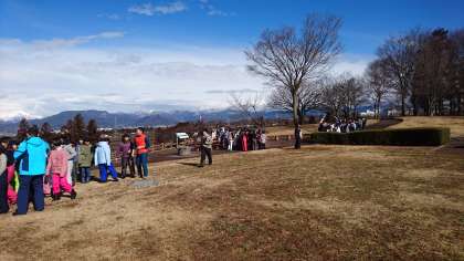 赤城高原SAで休憩し、集合写真をとりました。気温は12度。雪がありません。