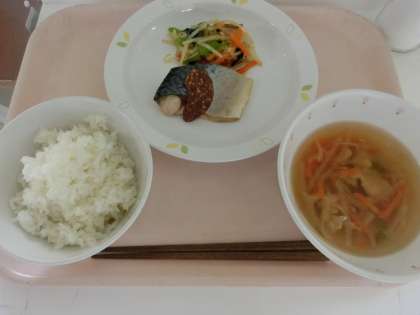沢煮椀は、細切りにした肉や野菜を入れたすまし汁です。今日は魚に濃い味噌だれがかかっているので、汁物はあっさりしたものにしました。味はあっさりしていますが、豚肉のうまみが出ていておいしく仕上がっています。