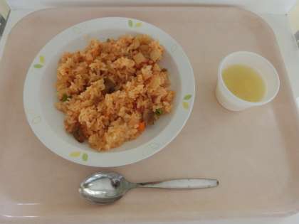 今日はチキンライスとゼリーです。月曜日ぶりにゼリーがついているので、「今日はデザートがある!」とみんな喜んでいました。
