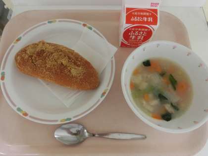 2年生以上にとっては、待ちに待った久しぶりの揚げパンです。そして汁物は、密かに人気のあるABCスープです。給食が始まって2週間、疲れもたまる金曜日。今週最後のもうひと頑張りができるようにと願って、人気のメニューにしてみました。