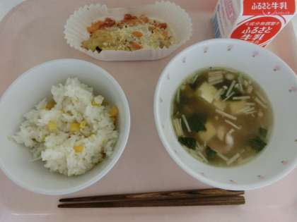 まだまだ暑いですが、9月に入って一週間以上経ちました。せっかくなので旬が過ぎる前に夏野菜に親しんでもらいたいと思い、生のとうもろこしやモロヘイヤを使った献立にしました。