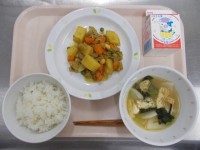 秋晴れが気持ちよい一日です。給食も秋らしい食材が増えてきました。ひじきごはんは、米とさつまいもを先に炊いて、後から他の具を混ぜています。いもの甘みと具の塩味がちょうどよく合わさり、おいしくできました。