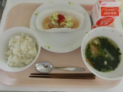 今日の献立を見た子が「先生、なんで“なんちゃって”なの?」と不思議そうにしています。「ロールキャベツはお肉をキャベツで巻くけど、これは巻いていないからだよ」と言うと「そういうことか〜!なんだかおもしろい!」と納得したようでした。