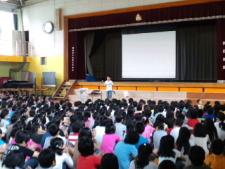 6年生の「千歳台遺跡」の学習発表では、狩りや服装、金属器に関する発表がありました。
