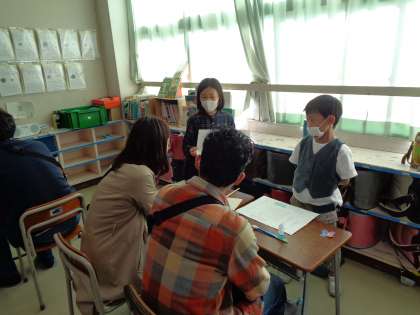 生活科の発表では、自分が作ったおもちゃの特徴をしっかり説明していました。