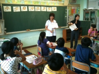 5年生、英語活動の授業です。英語支援員と共に、オールイングリッシュで、リズムよく、学習が進みました。