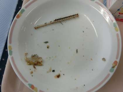 特に1年生は、初めてはしで身を開きながら魚を食べるという子も多く、担任の先生や、栄養士に教わりながら頑張りました。上身がスッと割れて、背骨が出てくるのを見て「あっ!こういうことかー!!」とスッキリした様子。やり方がわかると食べられる子が増えていき、魚を食べる良い練習になったと思います。