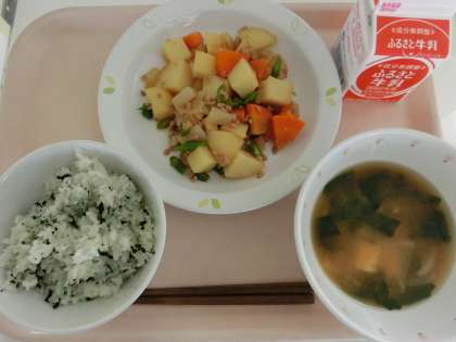 今日は3・5年生はごはんがおにぎりになります。おにぎりを握るよ、とはっきり明言はしていなかったので、帰校した子どもたちは「先生、今日の給食何?おにぎり!?」「おにぎりだ!!」ととても嬉しそうにしていました。