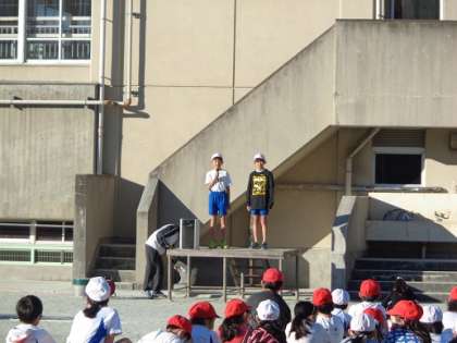 なわとび月間の締めくくりになる、「クラス対抗長縄大会」を行いました。