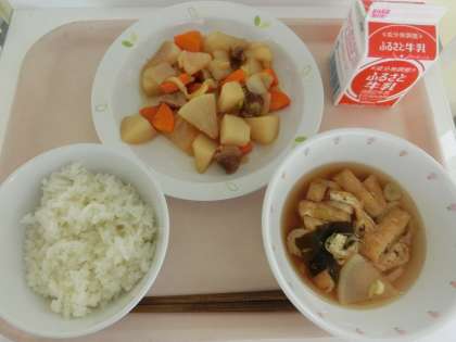 今日は煮物に大蔵だいこんを、味噌汁に青首だいこんを使っただいこんづくしの給食です。よく味がしみた煮物も、だしがきいた味噌汁も、子ども達はよく味わって食べていました。せたがやそだちの大蔵だいこんは区内各校で給食に使われているため需要が高く、使える量には限りがありますが、1月も登場予定です。お楽しみに!