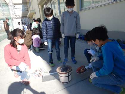 社会の授業で七輪体験を行いました。