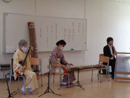 最初は、尺八、三味線、琴の演奏を聴きました。