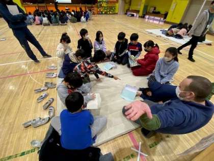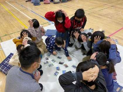 6名のALTの先生やエミリー先生とかるたやけん玉などの体験をしながら楽しく外国語と触れ合いました。