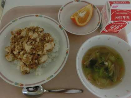 今日の果物はいよかんです。日本生まれの柑橘で、果汁がとても多くジューシーです。甘さの中に酸味と苦味がある印象でしたが、今日のいよかんはとっても甘い!ピリ辛な麻婆豆腐の後に食べると、甘みが口いっぱいに広がり、後味はさわやかでさっぱりしました。